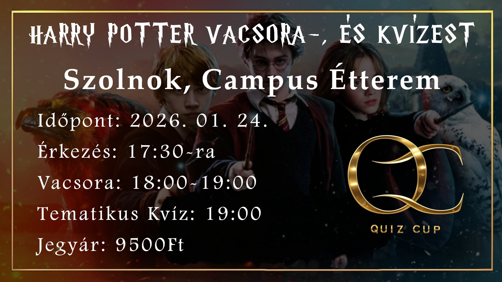 Harry Potter tematikájú vacsora- és kvíz-esttel készült nektek csapatunk!